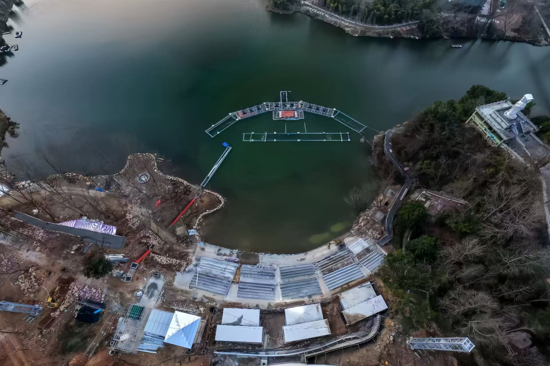 Cultural tourism water features: Based on the scale of the lake/river, plan functional zones for the main spray area, performance area, and audience viewing area;