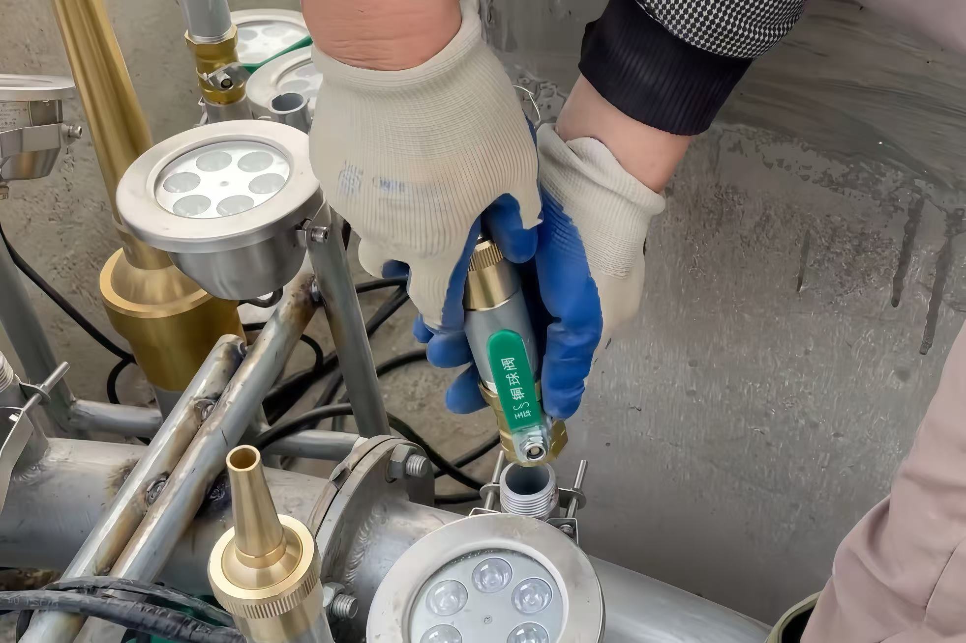 The service covers all contracted equipment, including water pumps, nozzles, lighting fixtures, control cabinets, inverters, sensors, and special effects equipment.